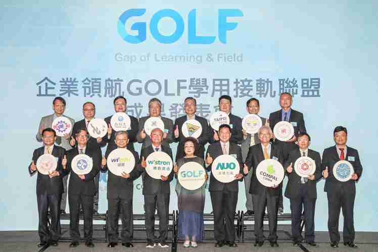 GOLF学用接轨联盟集结企业和学校的力量,,,打造「学用合一、、、、产学接轨」的创新合作平台 (前排左起:淡江大学副校长何启东、、、元智大学校长林启瑞、、、纬育执行长许延岳、、、纬创总经理暨执行长黄柏漙、、、、教育部政务次长范巽绿、、、至成国际董事长暨执行长彭双浪、、、仁宝总经理暨执行长翁宗斌、、、大同大学校长何明果、、、、圣约翰科大校长艾和昌;后排左起:明新科大校长林启瑞、、、、龙华科大校长葛自祥、、台湾科大校长廖庆荣、、、中兴大学副校长郑政峯、、、、中央大学校长周景扬、、台北科大副校长任贻均、、、中华科大副校长石大明、、明志科大校长刘祖华)